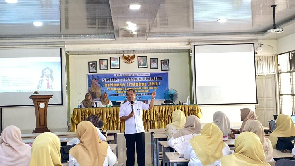 SMK Negeri 3 Payakumbuh kembali menunjukkan komitmennya dalam meningkatkan kompetensi guru dan kualitas pembelajaran melalui kegiatan In House Training (IHT) dengan tema “Guru Hebat, Indonesia Kuat”. Kegiatan ini merupakan bagian dari implementasi program SMK Pusat Keunggulan (SMK PK) skema Pembelajaran Mendalam, yang dilaksanakan sebagai upaya memperkuat kapasitas pendidik dalam mewujudkan pembelajaran yang relevan dengan kebutuhan dunia kerja dan industri.